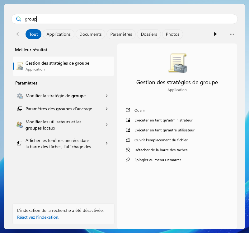 Pour cela, rendez-vous dans la stratégie de groupe.