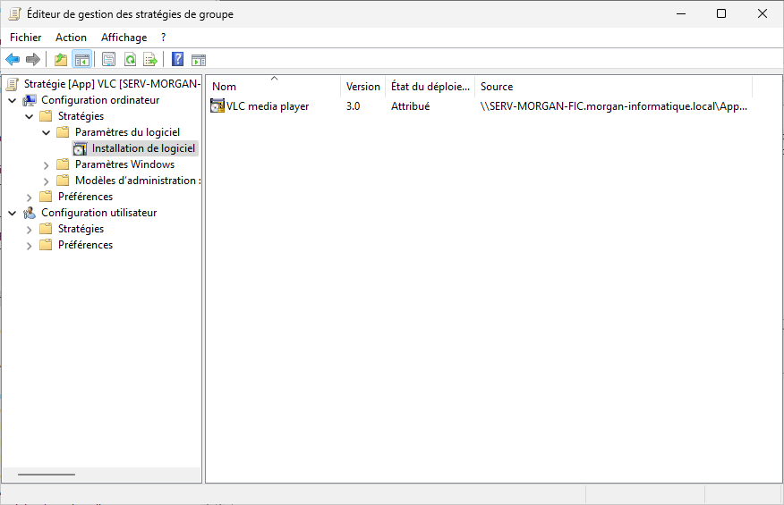Créer une GPO et ajouter l'installateur via son chemin réseau.