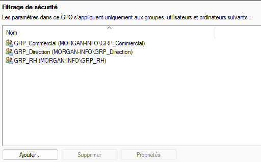 Dans le filtrage de sécurité de la GPO, mettez uniquement les groupes concernés.