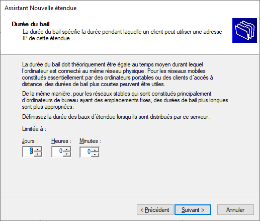la durée du bail est le temps où une adresse IP sera réservée pour un appareil