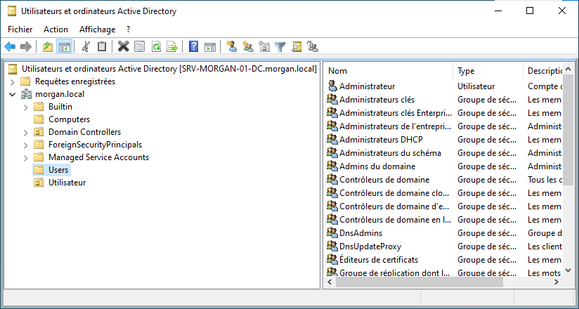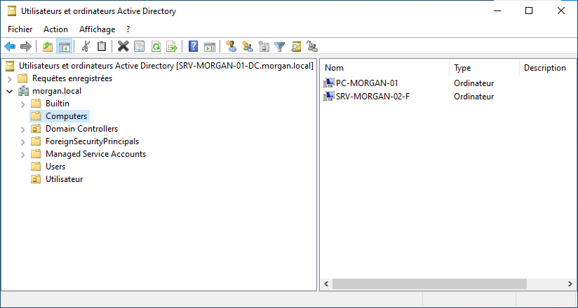 Vous allez retrouver vos ordinateurs enrôlé dans "Computers" et vos utilisateurs dans "Users".