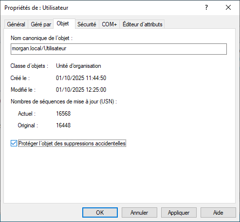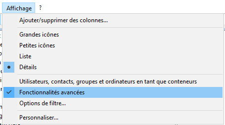 Si vous activez la protection contre la suppression actuelle, vous devez la désactiver. Si vous voulez supprimer le groupe, vous devez pour cela afficher les fonctionnalités avancées et ensuite aller dans les propriétés du groupe -> objet et décocher la protection.