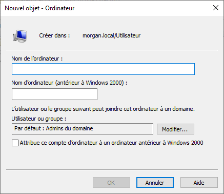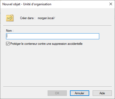 Vous pouvez créer, comme vous le souhaitez, des dossiers pour organiser vos utilisateurs et vos ordinateurs, cela est très pratique pour appliquer ensuite des GPO.